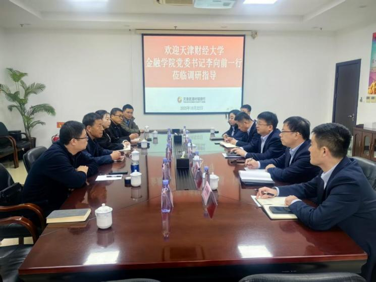 为切实做好学院2026届毕业生就业工作,扎实推进“访企拓岗”行动实效,进一步深化产教融合、拓宽就业渠道,10月22日,金融学院党委书记、院长李向前带队,一行五人走进天津武清村镇银行,开展走访调研与合作交流。天津武清村镇银行董事长姜继军、行长刘立军、监事长王勇等企业领导热情接待并参与座谈。