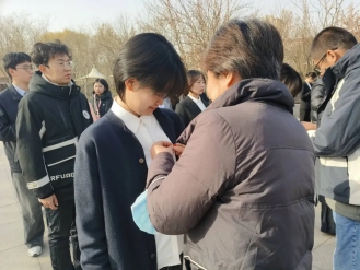 教师党员代表为新发展党员郑重佩戴党徽,金色徽章映照着青春面庞,凝聚着“承初心、担使命”的奋进力量,激励青年党员以行动擦亮初心、以实绩诠释忠诚。在金融学院党委副书记赵爽的领誓下,全体新发展党员面向党旗举起右拳,铿锵誓言与纪念馆的红色底蕴交相辉映,字字千钧间凝聚起“一生一世跟党走”的坚定信念。师生共同参观馆内史料,重温“一二•九”运动波澜壮阔的历史画卷,深刻体悟中国共产党在民族危亡关头的中流砥柱作用,进一步坚定了“为民族复兴而奋斗”的初心使命。