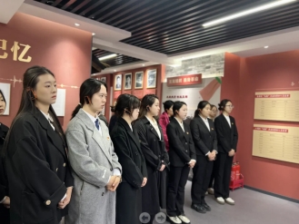 金融学院教职工党支部党员代表与全体新发展学生党员一同走进纪念馆,开启“沉浸式”红色研学。在镌刻着先辈热血记忆的场馆前,新发展党员代表、金工2301班董佳欣作为青年金融学子发声:“新时代青年党员既承载着爱国奉献的精神基因,更肩负着服务中国式现代化的时代重任。我们必将以党员标准严格要求自己,把金融专业所长转化为服务实体经济、践行金融报国的实际行动,用青春践行‘请党放心,强国有我’的庄严承诺。”
