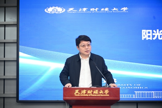 天津财经大学党委副书记、校长孟昊在致辞中对“阳光保险集团·天津财经大学产学研协同育人工作站”的成立表示热烈祝贺,并向阳光保险集团长期以来对学校发展的支持致以衷心感谢。他指出,工作站的揭牌标志着校企合作进入实质性、深层次的新阶段,是学校深化产教融合、服务社会的重要举措。面对新时代对创新型、应用型人才的迫切需求,天津财经大学始终致力于培养具有家国情怀与实践能力的卓越财经人才,此次与阳光保险集团这样具有深厚行业积淀和社会责任感的企业携手,双方优势高度契合,将为人才培养和科研创新搭建坚实平台。工作站将成为连接理论与实践的桥梁、汇聚资源与智慧的协同平台、培育未来人才的熔炉,推动课程建设、师资交流与联合科研。学校将全力支持工作站建设,期待双方不断拓展合作领域,共同为服务国家战略、促进行业发展与地方建设贡献智慧与力量。