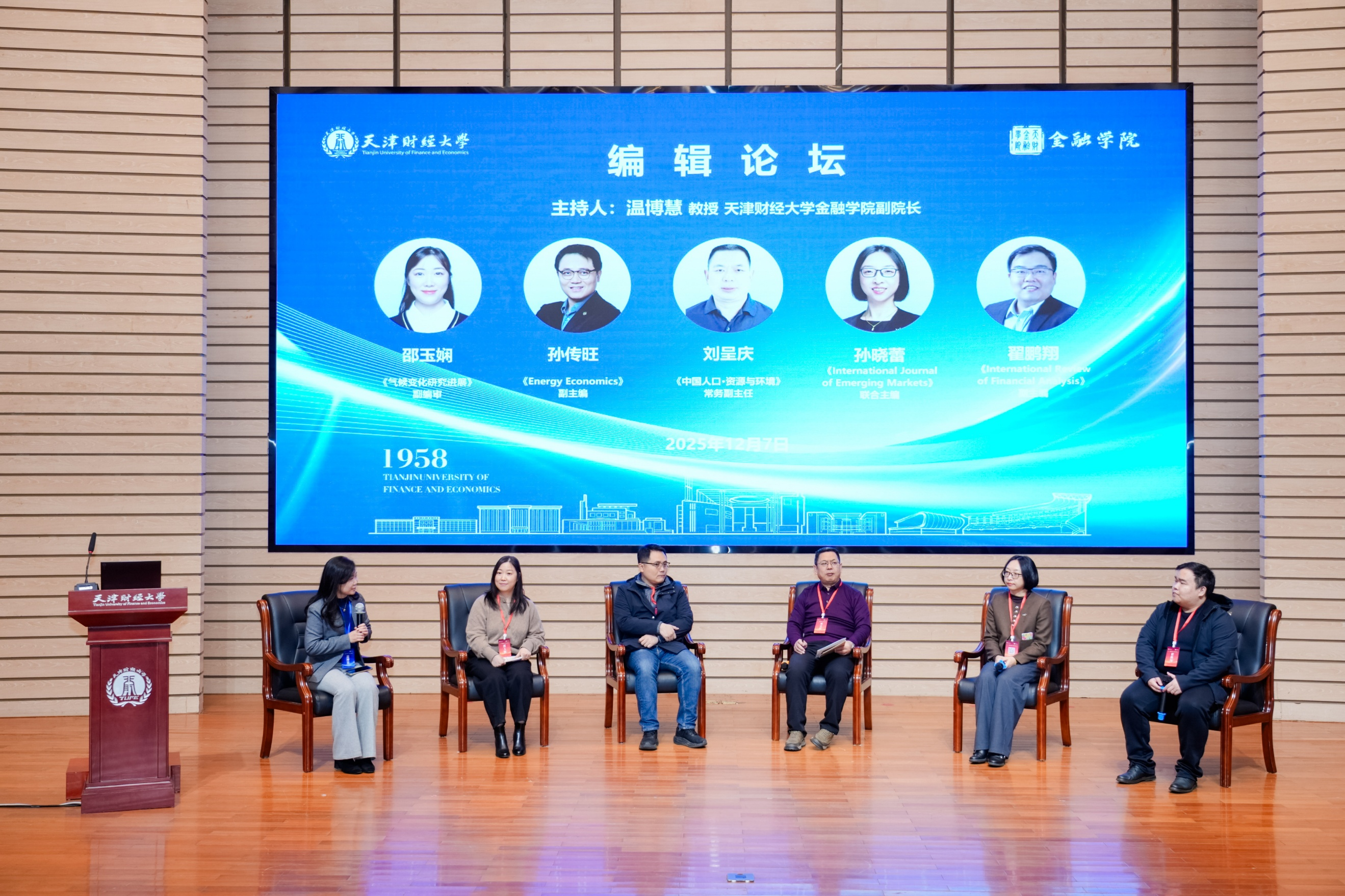 在编辑论坛讨论环节,邀请到《中国人口·资源与环境》编辑部常务副主任刘呈庆教授、《Energy Economics》副主编孙传旺教授、《International Journal of Emerging Markets》联合主编孙晓蕾教授、《International Review of Financial Analysis》副主编翟鹏翔副教授以及《气候变化研究进展》编辑部的邵玉娴副编审进行分享讨论。专家们就论文评审、选题规划及学术规范等话题进行了深入交流。金融学院副院长温博慧教授主持了编辑论坛。